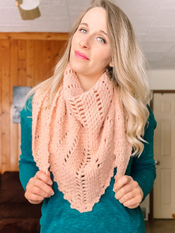 One of my favorite things about the better pink triangle scarf is that it is super easy to change the size! Honestly, I would have liked to make mine bigger, but as I mentioned in the blog post, I only had one ball. But if you have some extra yarn to play with, you can easily turn this scarf into a scarf! Read the pattern notes for instructions on how.