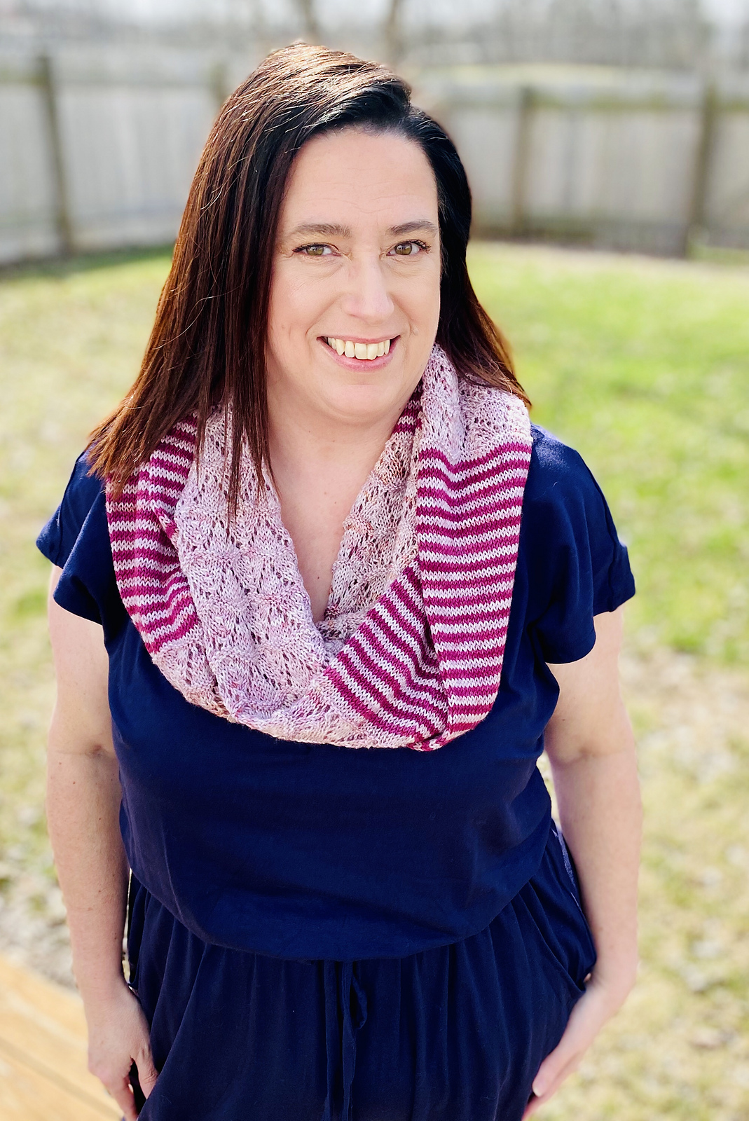 The Shells and Stripes Infinity Scarf is worked in the round to give a finished look on all sides and has alternating sides and stripes. The shell (side) parts are both written and mapped. The scarf starts with a preliminary cast on, so the end of the scarf is grafted at the beginning for a seamless connection.